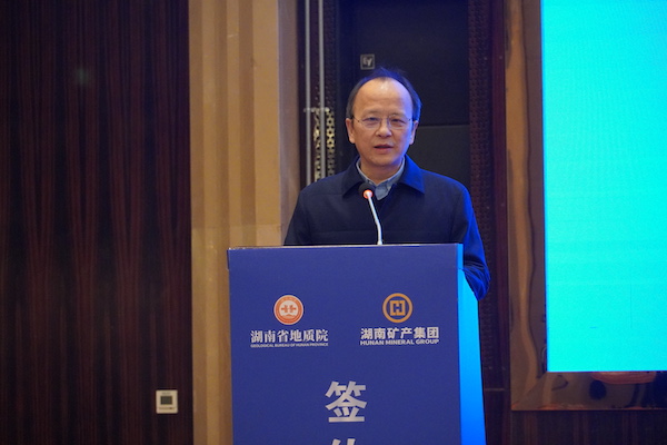 谈文胜指出,地质与矿业相互依存、共生共荣,此次签订的三个协议是双方优势互补、互利共赢的重要举措。通过优势资产和优质矿权的划转及双方的紧密合作,将极大整合资源,实现战略矿产的增储上产,并将释放协同效能,共同推动湖南矿业高质量发展。对于深化双方合作,他提出三点倡议:一是把握机遇求共进,利用各自优势,深化合作,服务地方经济社会发展;二是紧密联动求共融,建立有效的沟通联动机制,确保资源信息共享,项目需求对接;三是守正创新求共赢,持续推进合作创新,为打造湖南矿业集群提供强劲支撑。