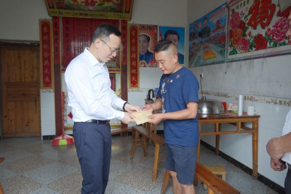 谈文胜走访慰问村内困难户,并为其送上慰问金。