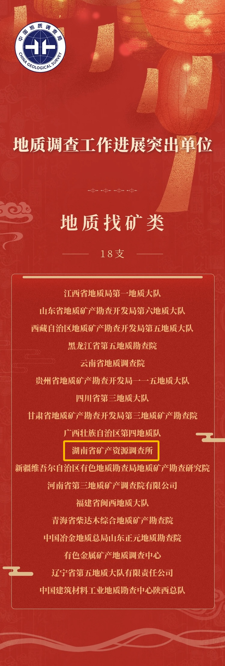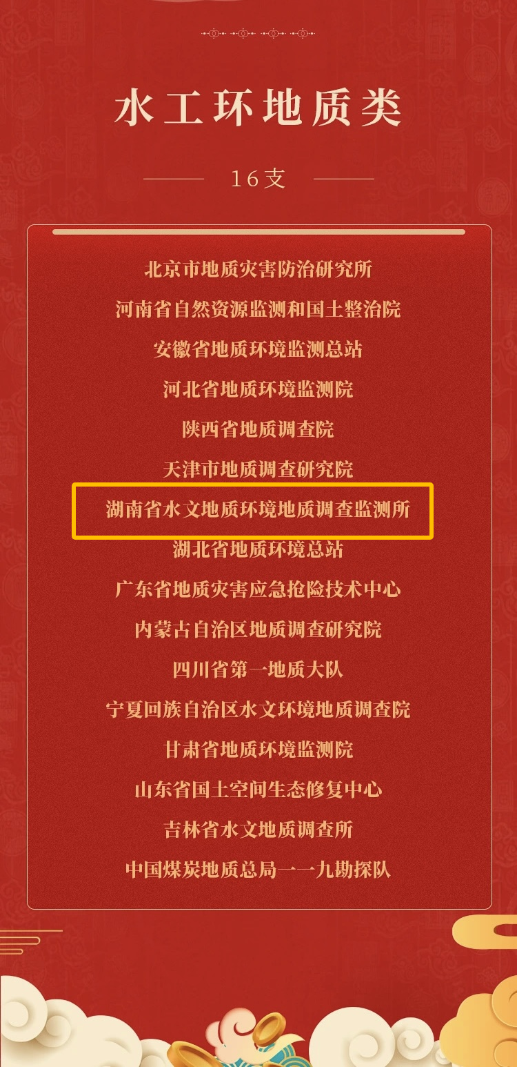 会议期间还公布了《中国地质调查局关于公布2023年度地质调查十大进展、地质科技十大进展的通知》和《中国地质调查局关于表扬地质调查工作年度进展突出单位的通知》,院属湖南省矿产资源调查所(地质找矿类)、湖南省水文地质环境地质调查监测所(水工环地质类)荣获2023年度地质调查工作进展突出单位。