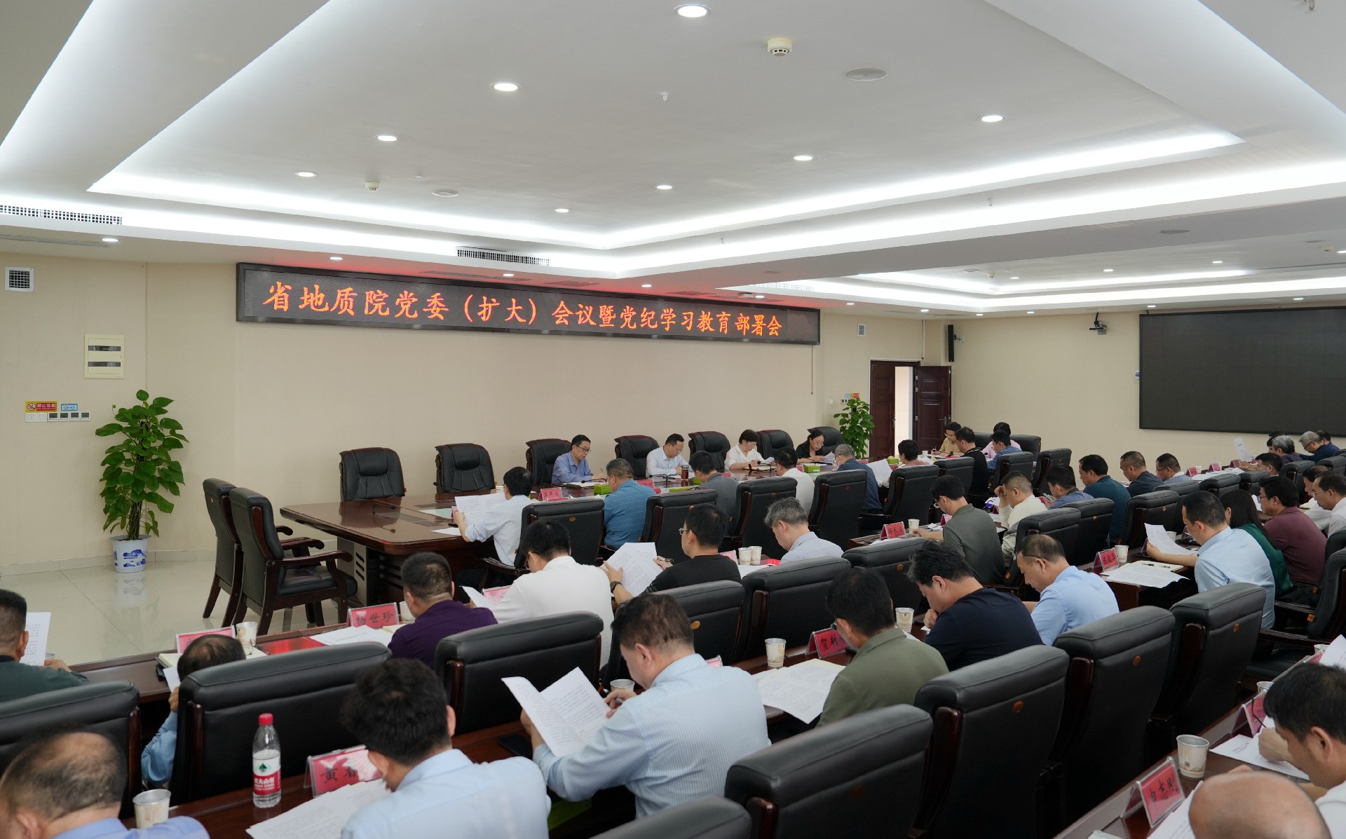 4月15日,省地质院召开党委(扩大)会议暨党纪学习教育部署会,专题研究部署党纪学习教育工作。院党委书记谈文胜主持会议并讲话。