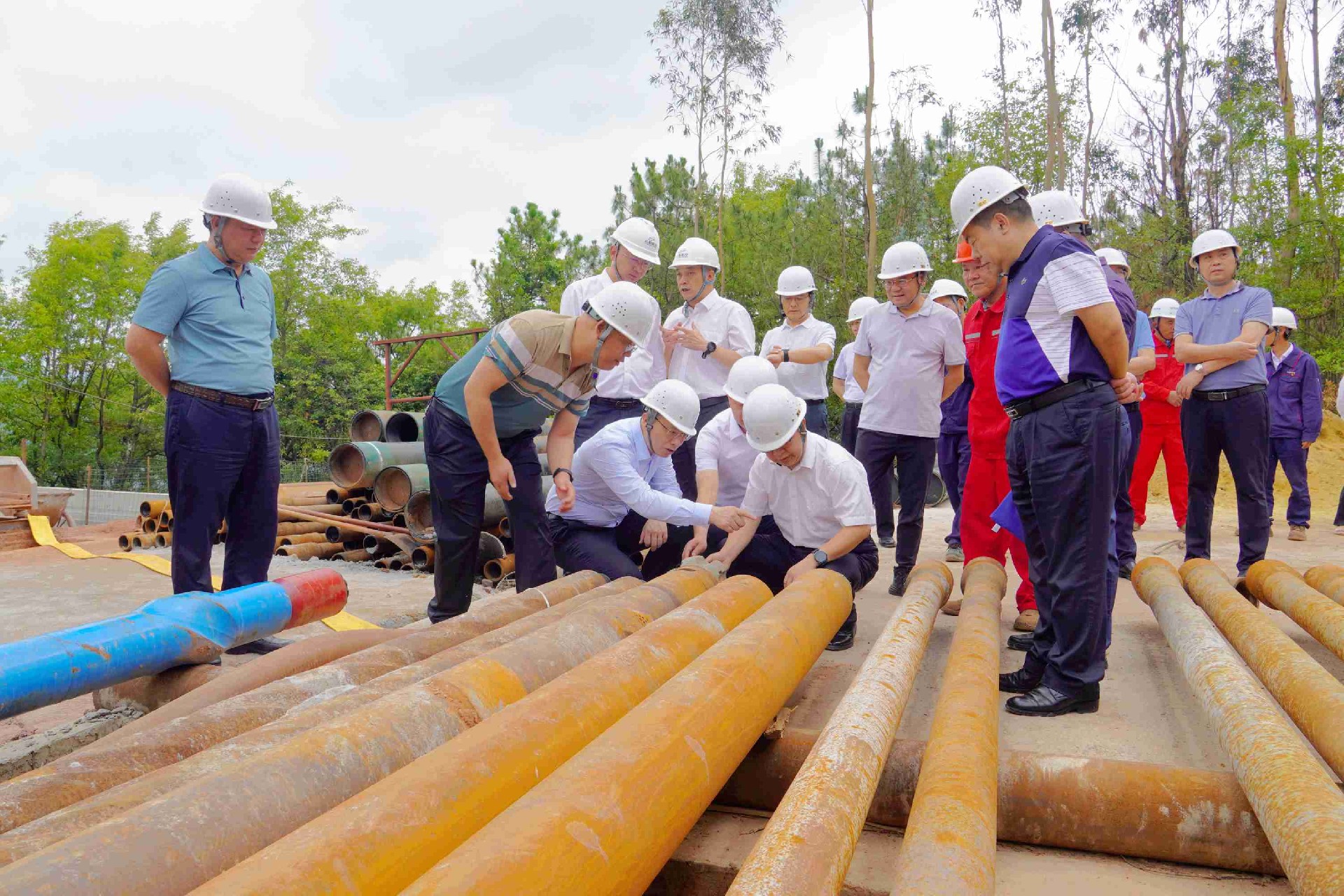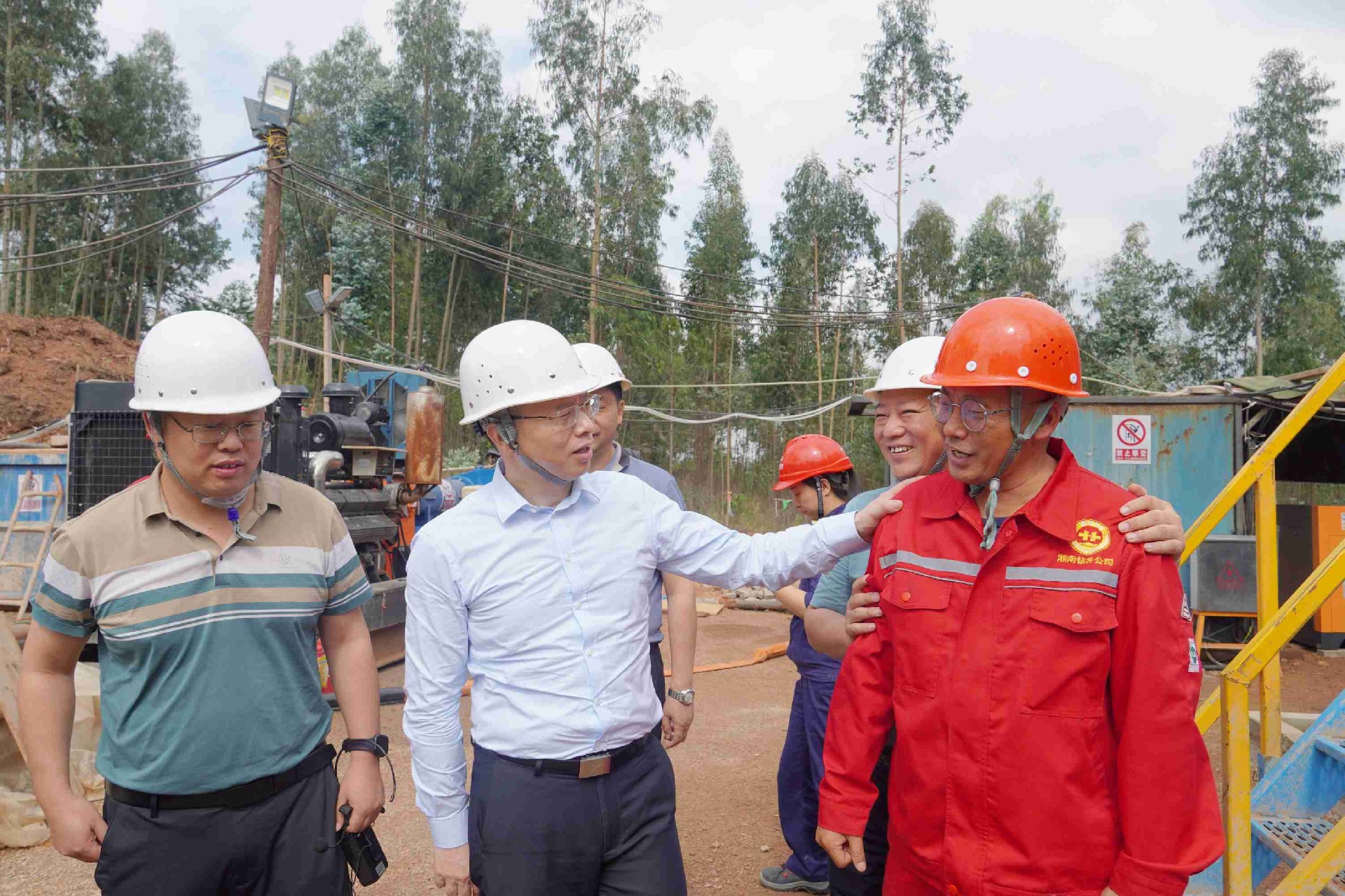 调研期间,谈文胜一行在云南能源投资股份有限公司党委委员、董事长周满富的陪同下,实地调研了院属单位湖南省地灾所湘南钻井公司实施的能投股份昆明盐矿空气储能项目,详细了解项目施工进度、技术应用、基层党建、安全生产等情况。他对省地灾所在引领新型储能赛道上开新局,在加快培育新质生产力上谋新篇的做法给予了充分肯定,对项目组精细化管理、标准化建设、常态化推进安全生产,高质高效推进项目建设给予了肯定。谈文胜还看望慰问了奋战一线的职工,查看住宿、食堂、党员活动室等环境,与他们亲切交流,仔细询问生活情况,了解思想动态等事宜,对他们为地质院高质量发展所付出的努力和作出的贡献表示衷心感谢。