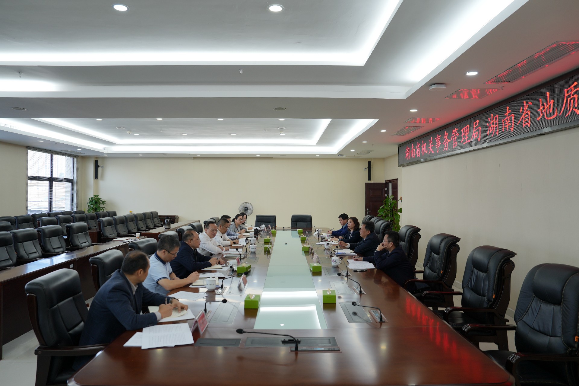 谈文胜对唐恒忠一行来院调研表示欢迎,对省机关事务管理局对院的大力支持表示感谢。他指出,湖南省地质院在省委、省政府的大力支持下,克服了摊子大、人员多、包袱重等困难,目前发展稳中有进、科创驱动强劲、职工齐心协力,呈现出改革趋稳、发展平稳、队伍安稳、开放势稳的新局面。下一步,将严格落实中央八项规定精神和省委、省政府关于党政机关办公用房管理的要求,组建工作专班,对全院办公用房、基地、设备、资产等摸清家底、确权登记、统筹使用,切实管理好、维护好、高效利用好国有资产,推进改革方案落实落地。就结合地质工作实际情况,着力盘活“三资”,建立档案技术用房、设备仓库、地质科研基地等事项进行了会商。