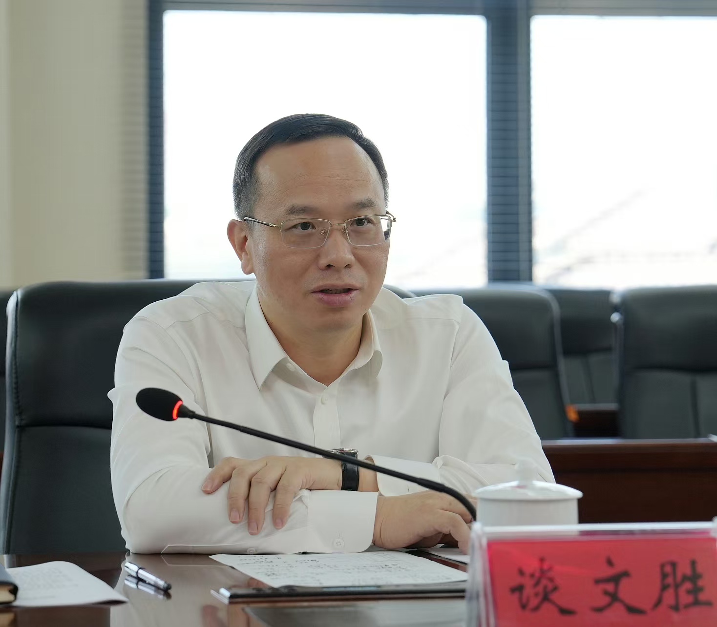 10月31日上午,省机关事务管理局党组书记、局长唐恒忠带队到省地质院调研机关办公用房管理情况并开展座谈交流,院党委书记谈文胜出席座谈会,院党委委员、副院长李晴日主持。