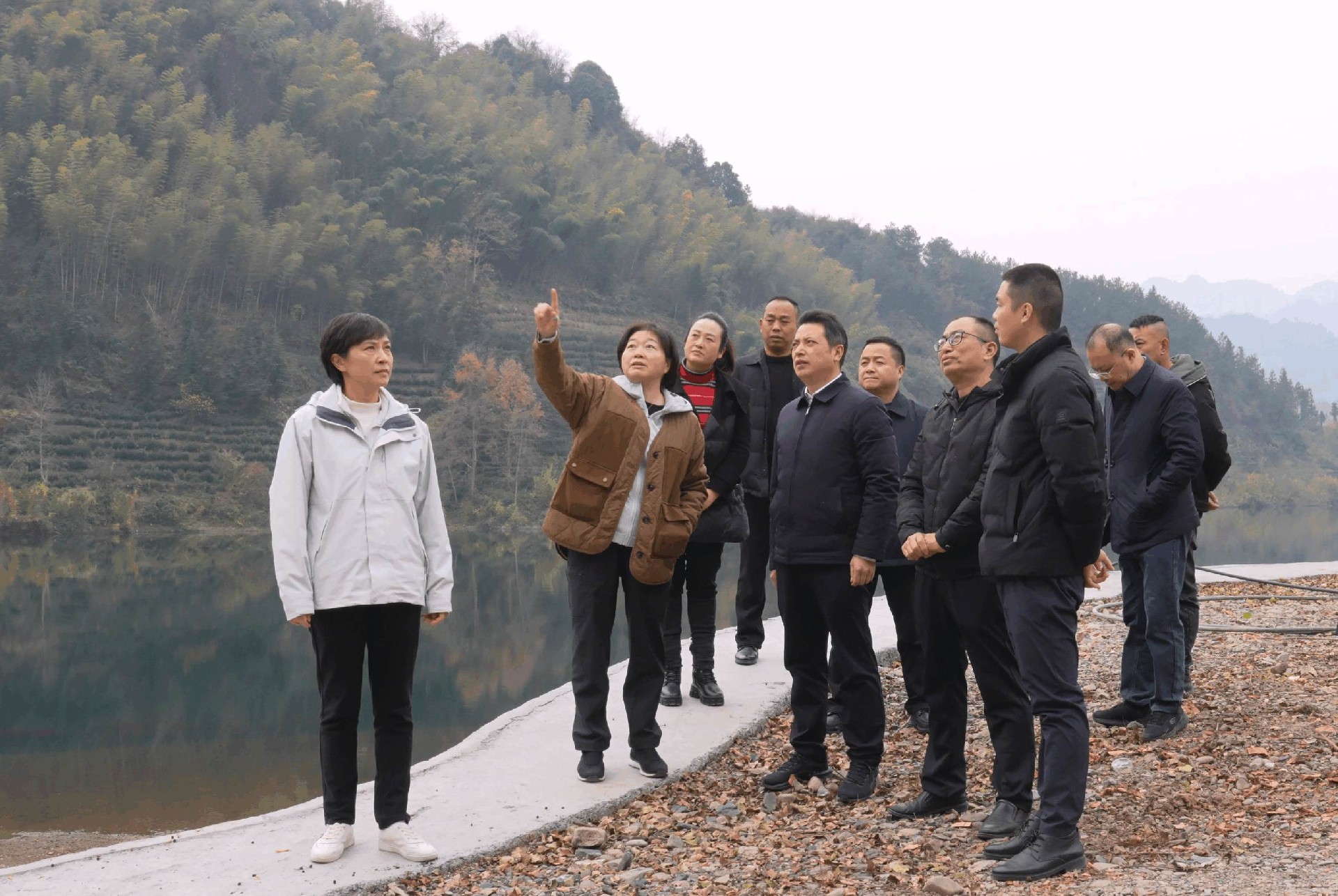 聚焦“三大领域”,力促“全面振兴”。12月23日下午,沿着青山绿水中的栖凤湖大道,湖南省地质院党委副书记、院长张皓一行来到湘西自治州古丈县栖凤湖村,考察调研乡村振兴工作并开展座谈交流。院党委委员、副院长刘凤娟,古丈县委书记滕朝晖,县委常委、县委组织部部长聂仁军参加。